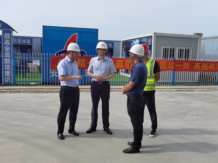 在项目施工现场,盛明宏对现场安全施工、防暑降温和后勤保障提出具体措施,对战高温、斗酷暑的一线员工表示亲切慰问,叮嘱项目管理人员合理安排班组人员工作时间,避高温、抢两头、采用夜间加班进行施工,加强自身防护,保证身心健康和安全生产。
