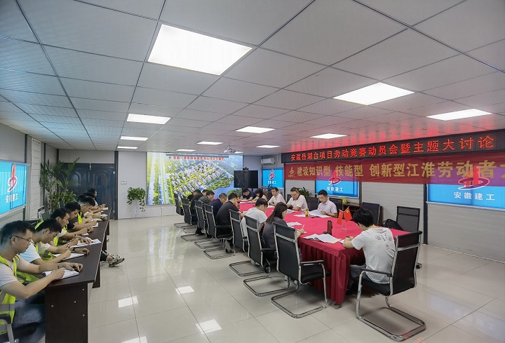 为充分调动广大员工主动性和积极性,进一步激发参赛热情,加快推动安建岳湖台项目快速达产、超产,完成既定目标。8月18日上午,安徽一建公司在安建岳湖台项目部召开劳动竞赛动员会暨主题大讨论;公司党委副书记、工会主席李宽旭,副总经理代鹏飞,公司相关部门负责人、阜阳市公司领导班子成员和项目部全体管理人员30多人参加了会议。